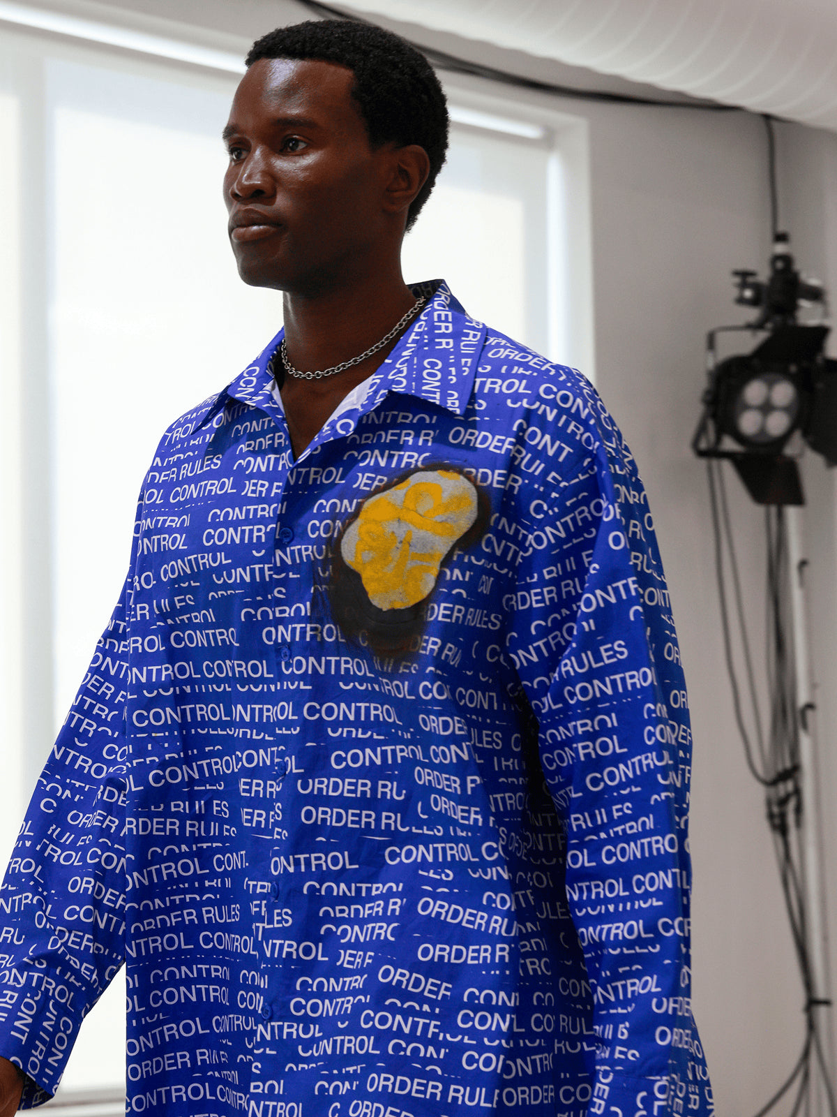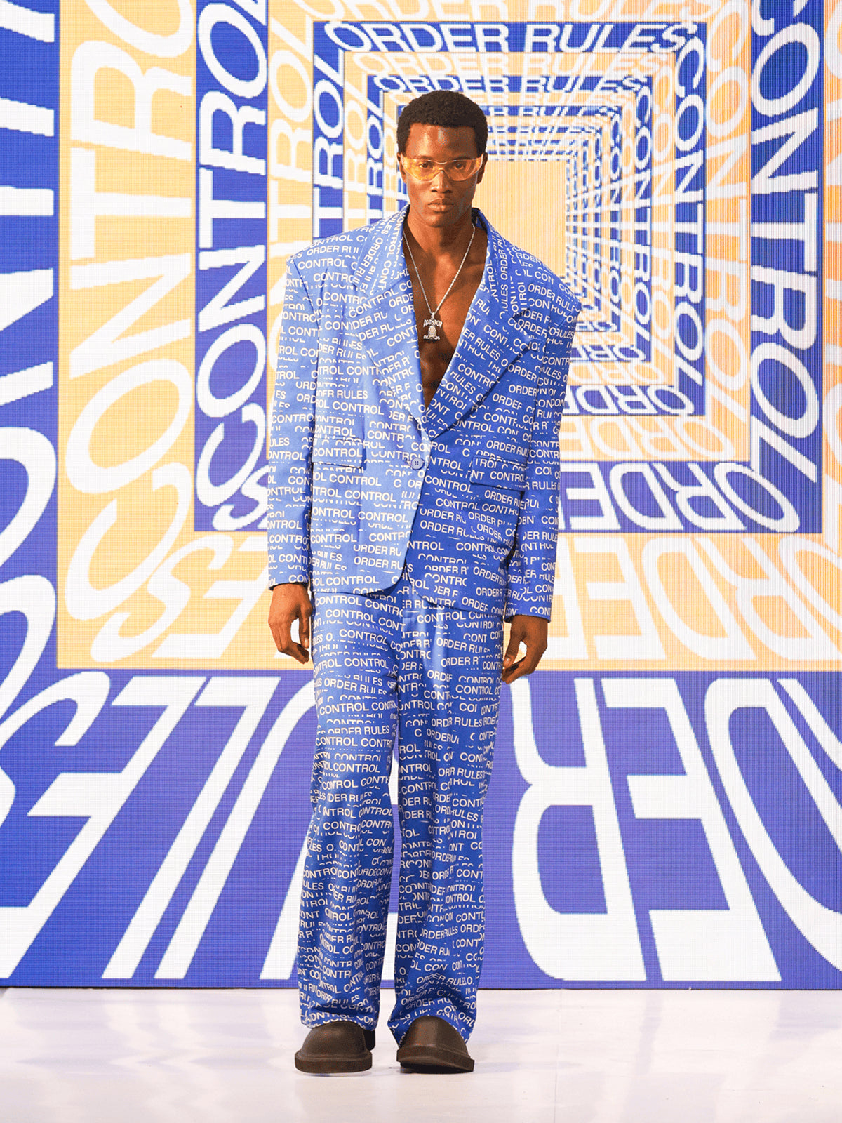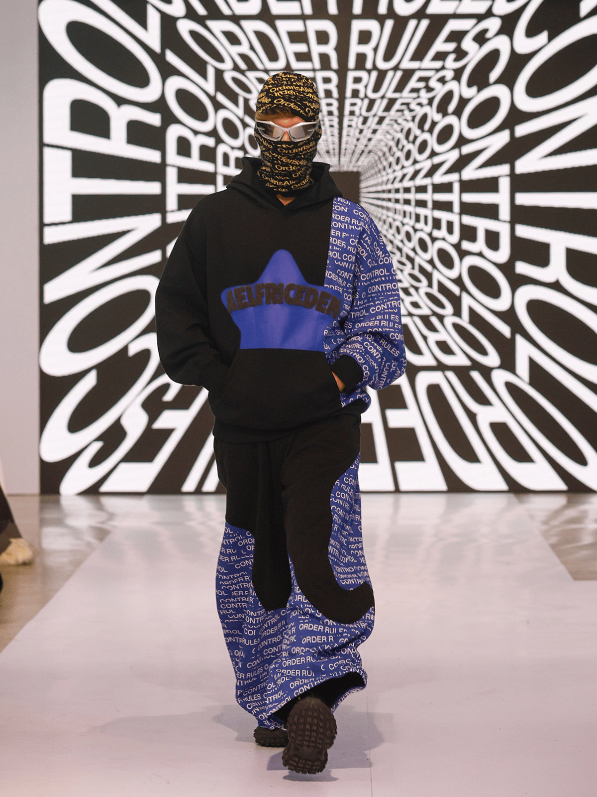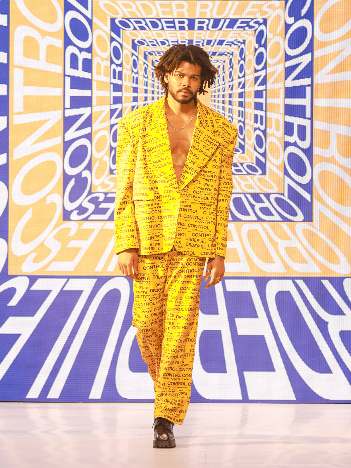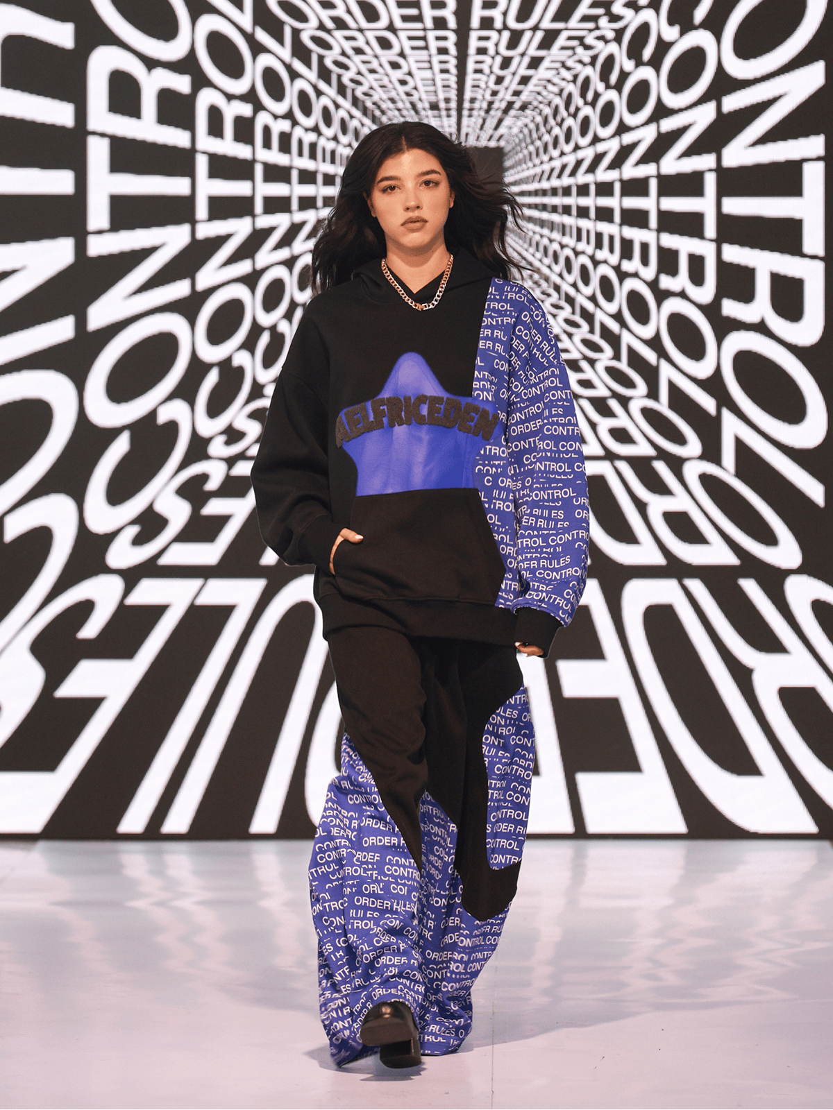 "MAKE WAVES NOT RULES" opens with a quiet but decisive gesture: removing the control tape that marks the runway. That simple act becomes the transition from boundary to possibility, setting the tone for a presentation shaped by motion, reinterpretation, and youth clarity. The show unfolds like a narrative where each look reveals another layer of reconstruction.