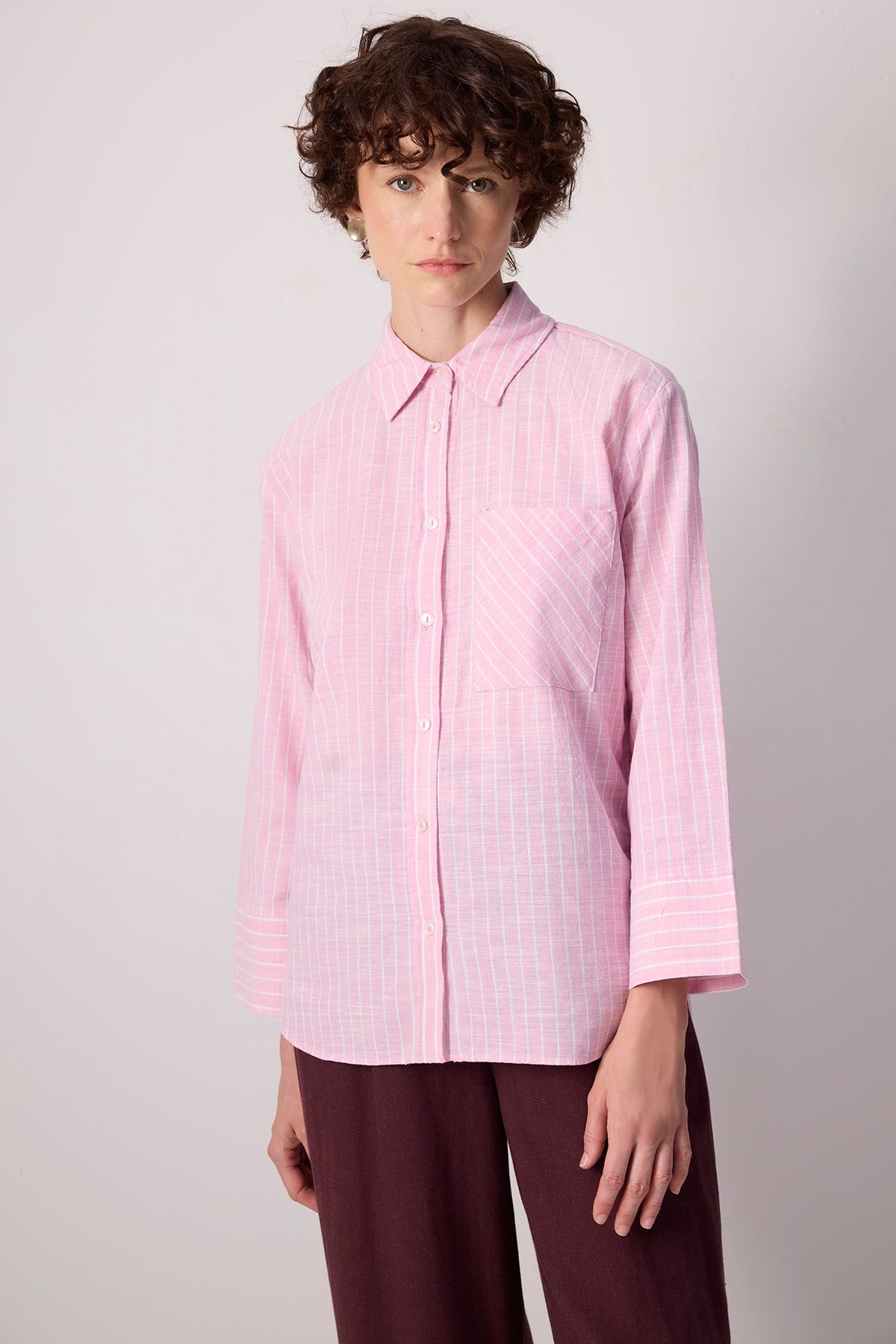%100 PAMUK ÇİZGİLİ GÖMLEK