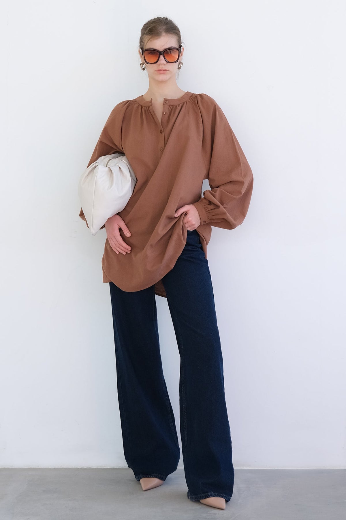 %100 PAMUKLU BÜZGÜ YAKA TUNİK