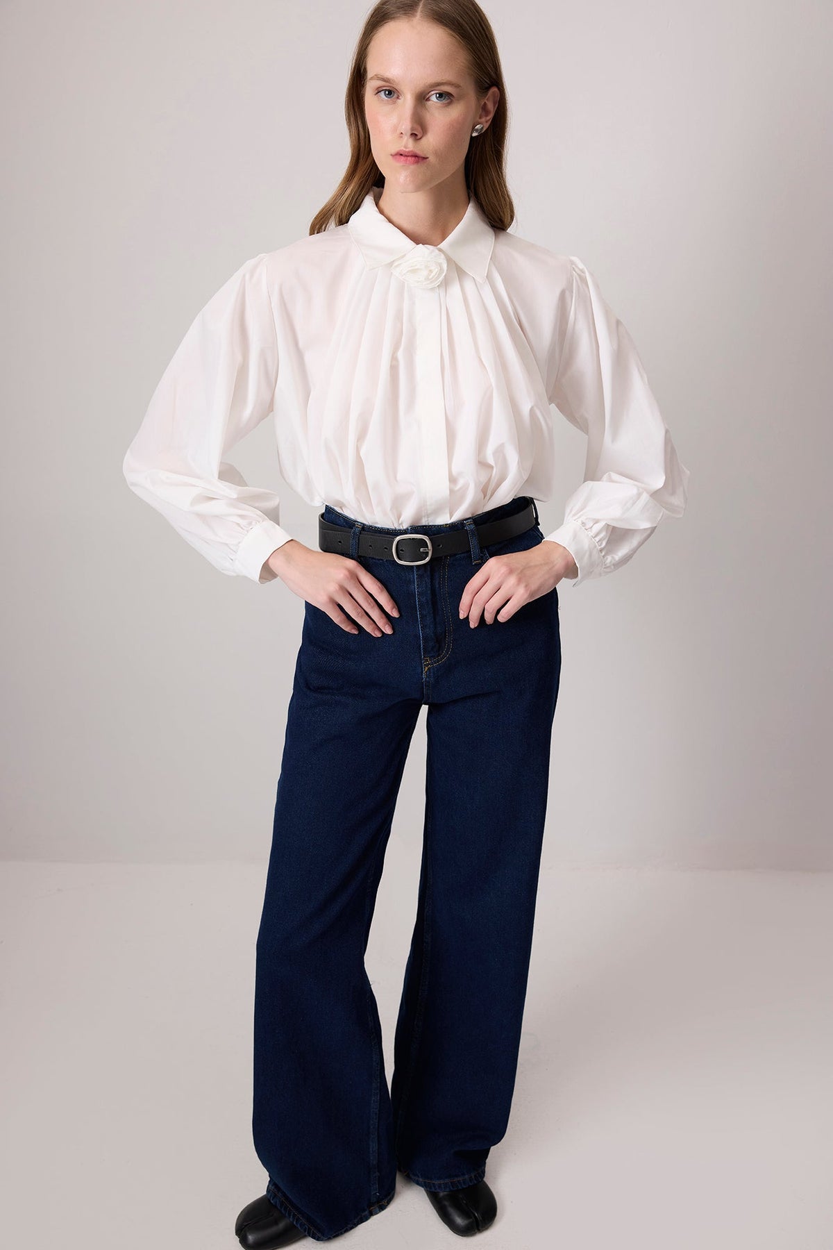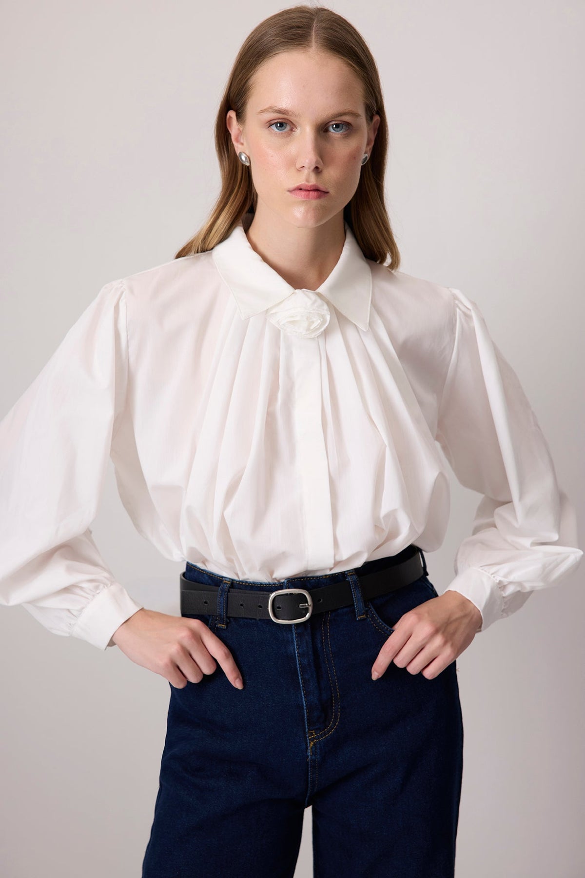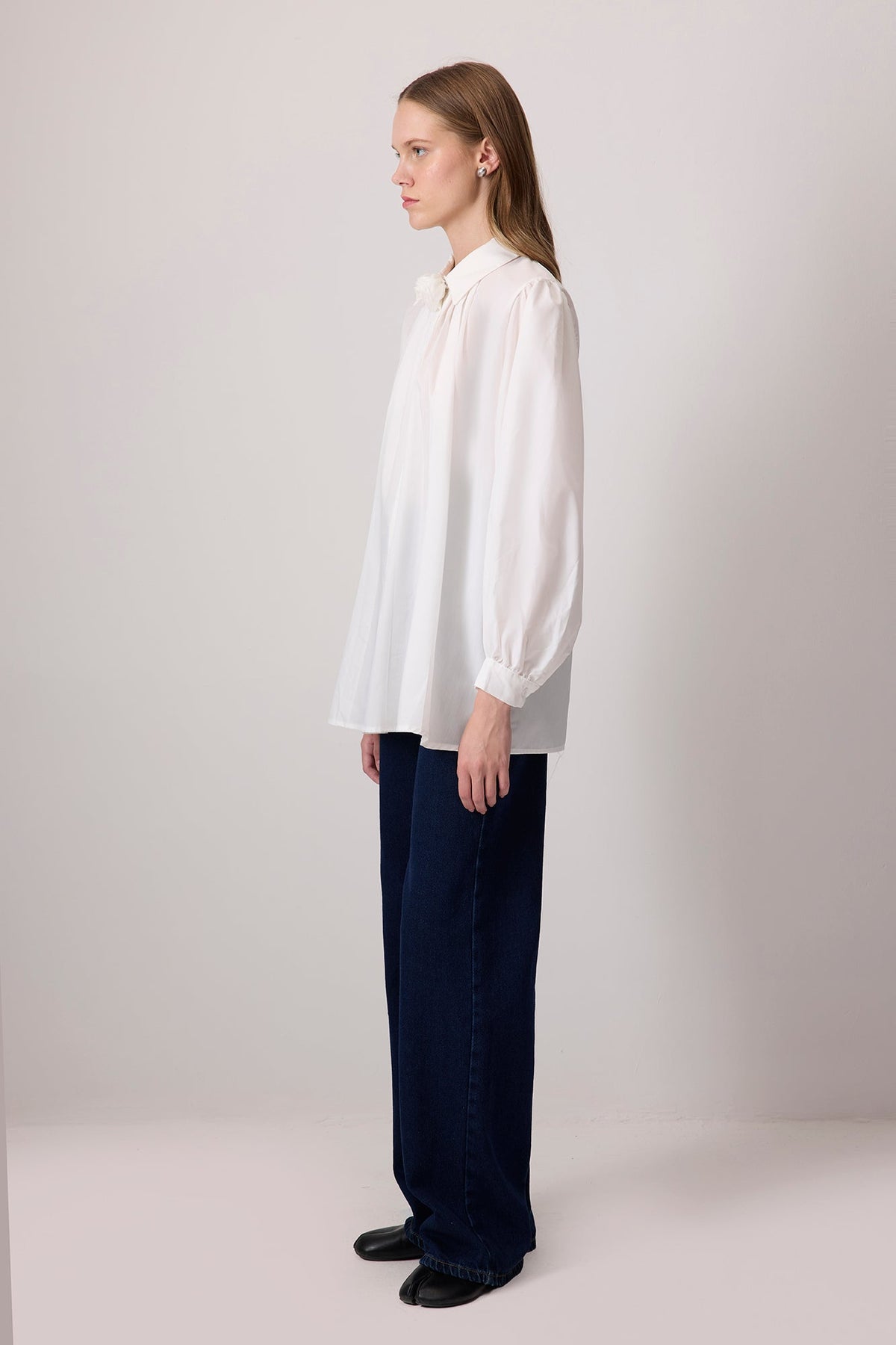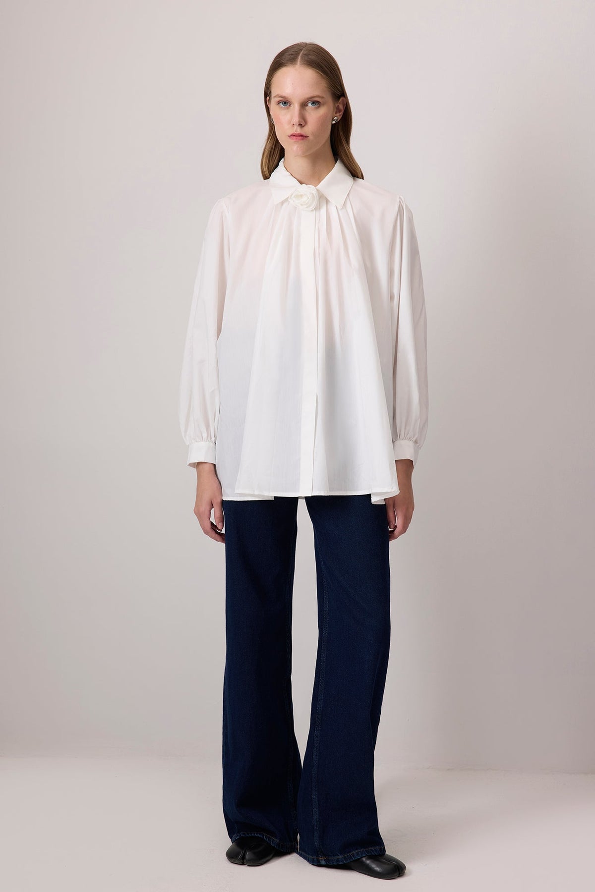 %100 PAMUKLU GÜL DETAYLI GÖMLEK